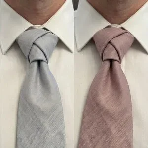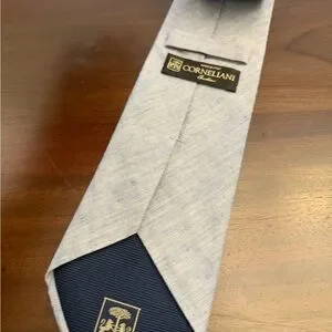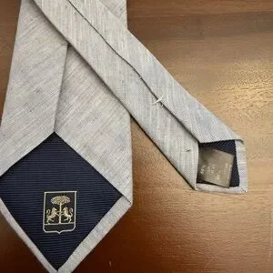 Refined herringbone linen tie by Corneliani. Soft pink and light blue tone with subtle texture. Sleek, versatile for dress and business attire. This is for both ties. Hand made in Italy. Excellent condition
