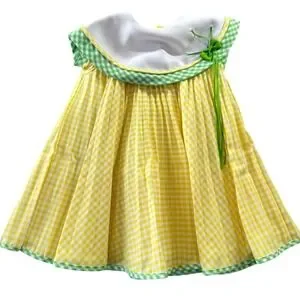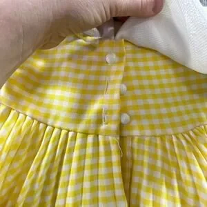 Youngsport Vintage Girls 3T Yellow Gingham Pleated Dress Oversized Bib Collar
