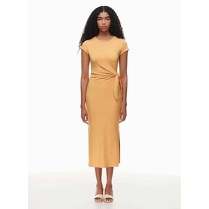Wilfred Aritzia Fortune Side Tie Midi Dress Apricot Yellow Short Sleeve Slit Med