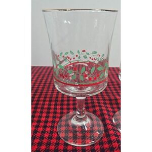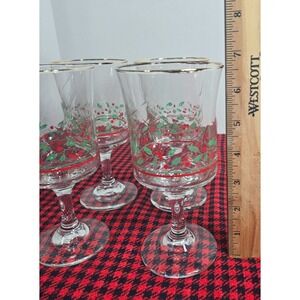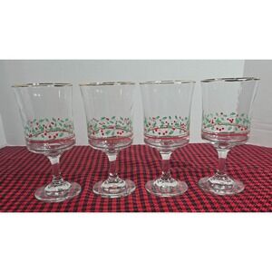 Vintage 1986 Arby's Holly/Berry Christmas Goblets w/Gold Trim 12oz Set of 4