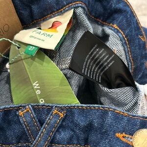 NWT FARM Rio Dark Denim High Waist Snips Pants Size 27 Cotton Flare Style 329081