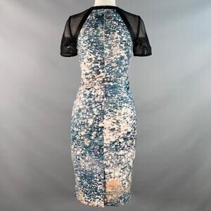 KAREN MILLEN Size 4 Black Green White Acetate Blend Abstract Mesh Sleeves Dress