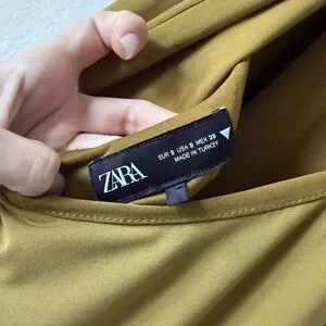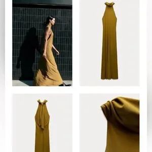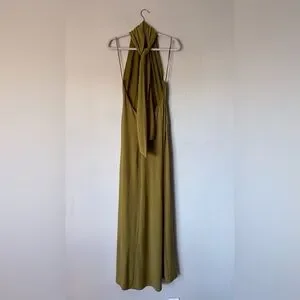 Zara Halter Maxi Green Dress Long Open Back Size S