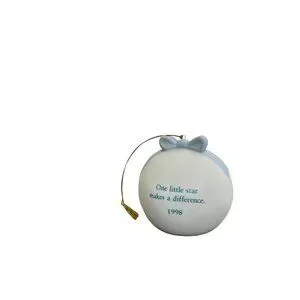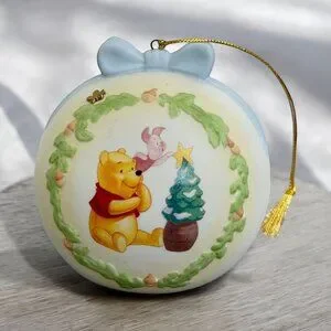 The 1998 Disney Pooh Piglet Christmas Ornament, "One Little Star Makes a Difference," is a beautifully crafted porcelain decoration. Featuring vibrant colors, this ornament captures the magic of the holiday season with beloved characters Pooh and Piglet.