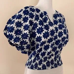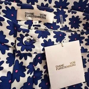 DIANE VON FURSTENBERG Lucy Top and Pencil Skirt in Daisy Dots Large True Blue