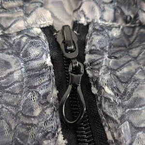 Jacket looks to be in good pre-owned condition, may have some minimal wear/marks, please see pictures. the front seems a little unevenly cut, but that might just be the style. Some wear to zip pull.
