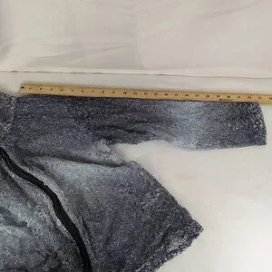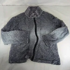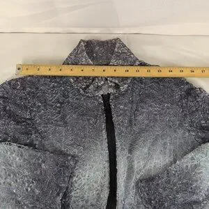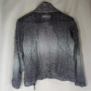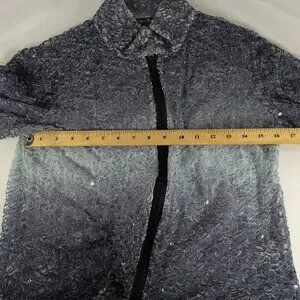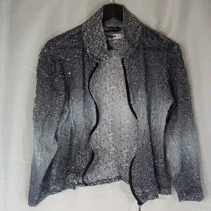 Damee Inc Jacket M Medium Women's Mesh Sequin Blue Gray Collar Sheer 3/4 Sleeve