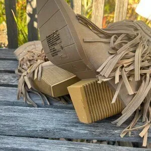 Forever Beige Faux New Suede/Leather Layered Fringe Boots, Size 9