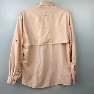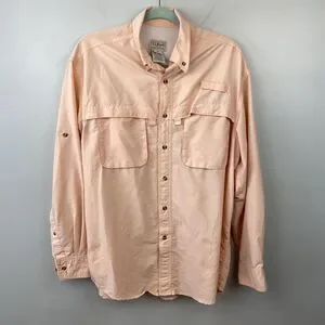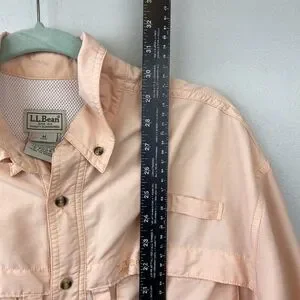 LL Bean Shirt Mens Medium Peach Lightweight Nylon Outdoor Fishing Vented Pockets