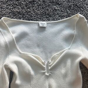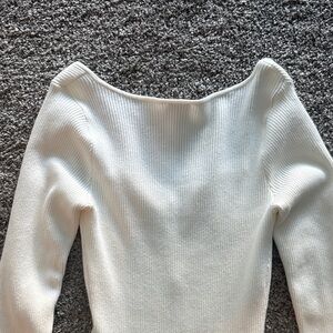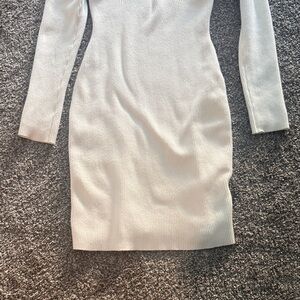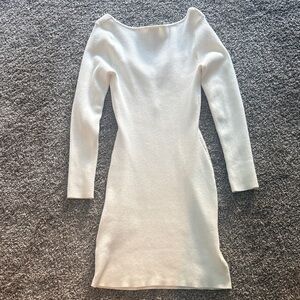 Abercrombie & Fitch Off White Ribbed Long-Sleeve Knit Dress