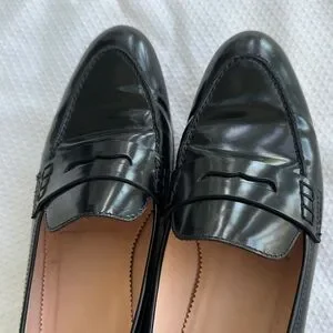Sleek black leather loafers. Classic design. Comfortable fit.