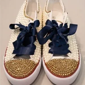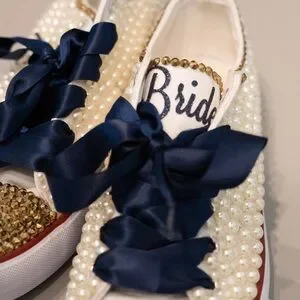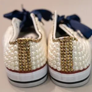 Elegant Pearl and Gold Custom Women's Bridal Sneaker