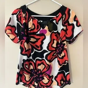 Worthington Bold Floral Blouse - Red, Black, Orange