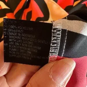Bold floral design with striking red, black, and orange colors. Perfect for casual or dressy occasions. Comfortable and stylish.