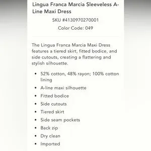 Lingua Franca Marcia Anthropologie NWT Sleeveless A-Line Maxi Dress size 6.