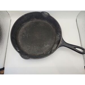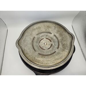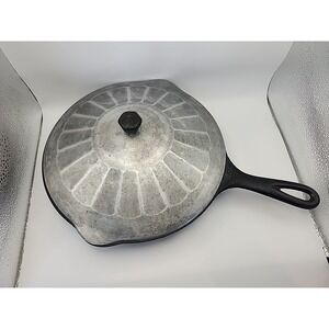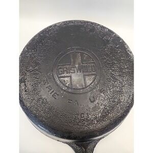 The Griswold Cast Iron Skillet #7 701 is a vintage collectible piece made in the United States in the early 20th century. This large skillet features a double spout and a round shape, perfect for cooking on both electric and gas stoves. With its classic black color and large block logo, this skillet is a must-have for collectors of antique cookware. The cast iron material ensures even heat distribution, while the non-stick surface coating makes it easy to clean. Ideal for any kitchen, this oven-safe skillet is a timeless piece that adds both functionality and charm.