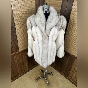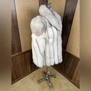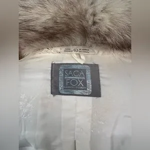 SAGA FOX “ GUARANTEE OF QUALITY” BLUE & WHITE FOX FUR COAT JACKET SIZE LARGE