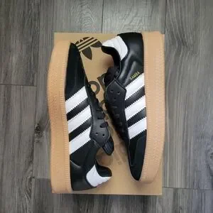 Classic adidas Samba silhouette. Black upper with white three-stripes. Gum rubber sole for vintage appeal. Clean, versatile styling.