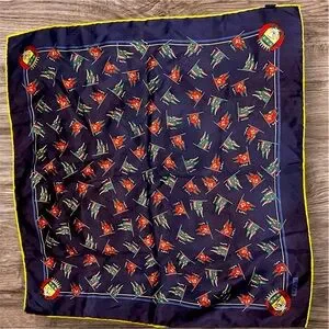 GUCCI SILK 🚩 ASCOT OR POCKET SCARF BLUE GREEN RED GUCCI EMBLEM FLAGS ITALY