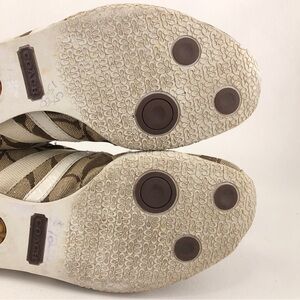 Woven Jacquard canvas material and suede leather upper. Lace up closure. Molded rubber outsole.