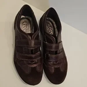 Stylish dark brown leather sneakers. Comfortable and versatile. Ideal for casual wear. ECCO Babette Hook & Loop Sneakers Size 38. very nice used condition.