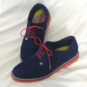 G/FORE Gallivanter Men's Suede Golf Shoes Navy/Red Spikeless-read Size Guideline