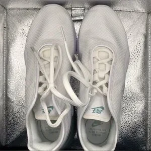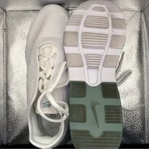 Lightly worn Nike sneakers in white and light green. Stylish, lightweight, and comfortable. Box included. Women’s size 8.5