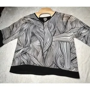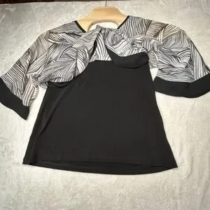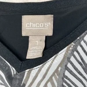 Chico Women's‎ Small ( 1 ) Black & White Sheer Blouse Sleeve Under Black Tank