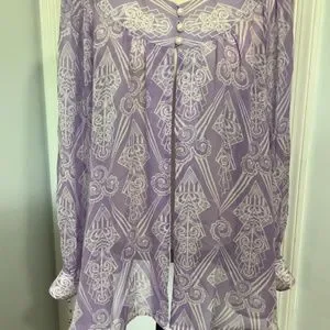 VINTAGE BOB MACKIE WEARABLE ART 100%SILK LILAC MEDIUM BLOUSE RARE ROMAN…