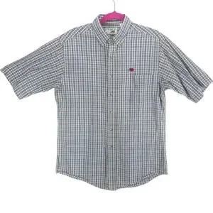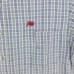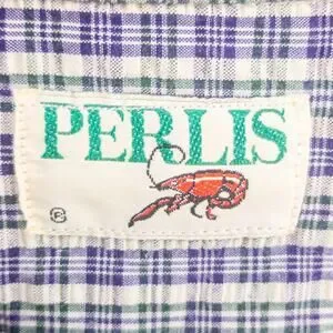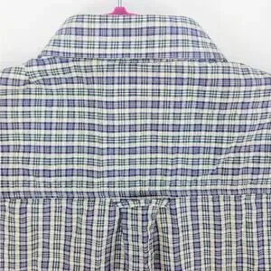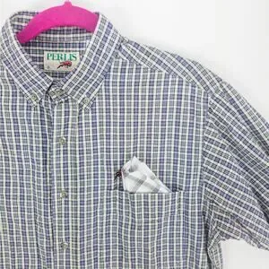 Perlis Seersucker Shirt Men's Medium Short Sleeve Button Down Blue Green Stripes