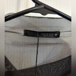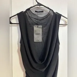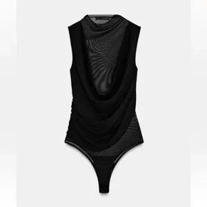 NWT Zara Sheer Tulle Draping Fabric High Neck Sleeveless Black Bodysuit Size XS