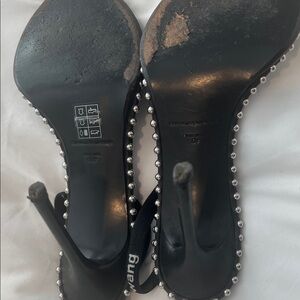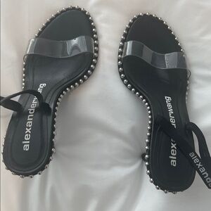 Chic black sandals with silver stud accents. Sleek design by Alexander Wang. Ideal for stylish outings.