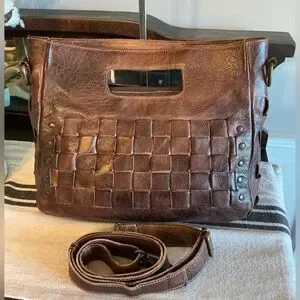 Bed Stu Orchid Woven Leather Handbag Crossbody Bag Teak Brown Retail $280