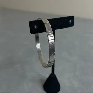 Vintage bracelet with textured surface. Sleek and understated design. Smooth inner band for comfort. Easy to pair with casual or dress looks.
