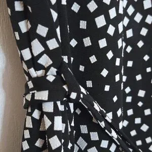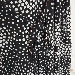 Elevate your everyday style with this beautiful black and white abstract "confetti" print dress. Designed with a flattering A-line silhouette, this midi-to-maxi length piece features comfortable 3/4 length sleeves and a classic scoop neckline. It comes complete with its original coordinated belt to cinch the waist for a defined look. The fabric is a high-quality, stretchy polyester-spandex blend that drapes beautifully without clinging, ensuring all-day comfort. Highly versatile, this dress can be easily dressed up with heels and jewellery for a formal event or dressed down with boots and a cozy cardigan for a chic, casual ensemble.