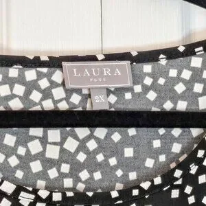 Laura Plus Black & White Square Polka-Dot A-Line Belted Midi Dress | Size 2X