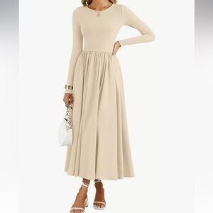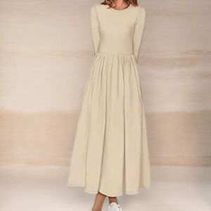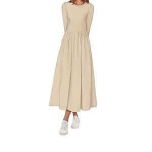 Merokeety Casual Long Sleeve Maxi Dress Pleated Waist 2026 Spring