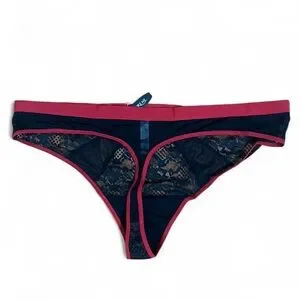 Elegant thong panties with red trim and black lace detailing. Perfect for a stylish and comfortable fit.