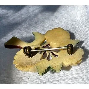 Vintage Hand-Carved Celluloid Yellow Roses Brooch Pin 1940s