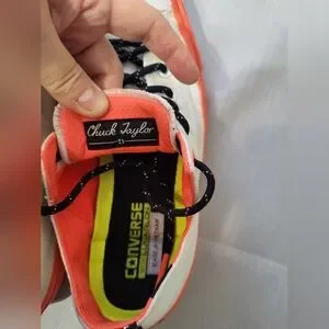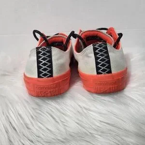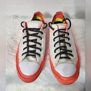 Converse Chuck Taylor White and Neon Orange Sneakers, Size 7