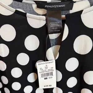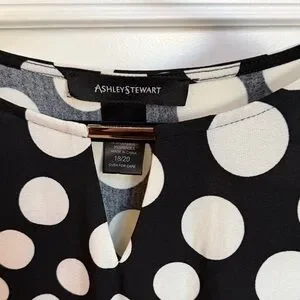 Ashley Stewart Black and White Polka Dot Blouse Bell Sleeve sz 18/20