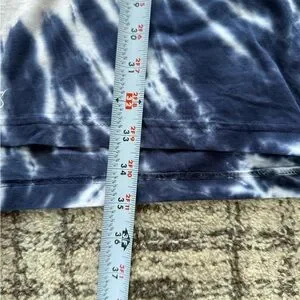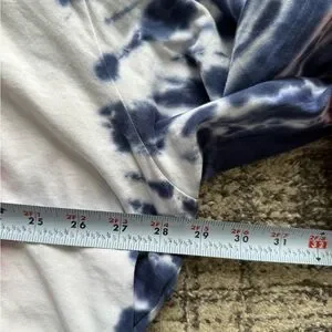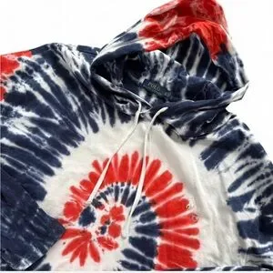 Ralph Lauren hooded sweatshirt with blue and white tie-dye pattern. Drawstring hood and pullover style. Soft cotton blend with casual vibe.
