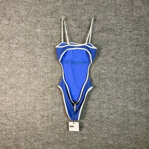 The NWT Beach Riot Daphne Blue One-Piece Swimsuit in size M is a stylish and sporty option for women looking to hit the beach. With removable straps and an open back design, this swimsuit offers both comfort and style. The solid blue color adds a pop of color to your beach look, while the built-in bra provides support. Perfect for designer beach days or active swim sessions, this swimsuit is a versatile addition to your swimwear collection.