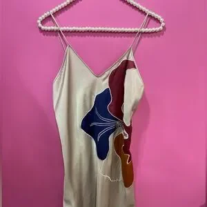 Vintage Natori Flower Print Cream Slip Dress