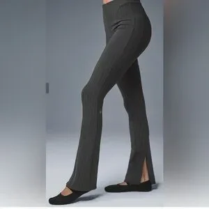 ALO Yoga Charcoal Ribbed Split-Hem Bootcut Pants