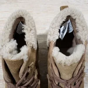 The NWOB UGG "ANALISE" Women's Suede Sheepskin High Heel Ankle Boots w/ Lambs Fur in Chestnut are a stylish and luxurious footwear choice for women. Made by the renowned brand UGG, these boots feature a sleek ankle shaft style and a cozy sheepskin lining, making them perfect for both fashion and comfort. With a high heel and a trendy design, these boots are sure to elevate any outfit. The chestnut brown color adds a touch of elegance, making them a versatile addition to any wardrobe.