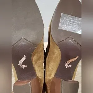 NWOB! UGG "ANALISE" Women's Suede Sheepskin High Heel Ankle Boots (8) Chestnut