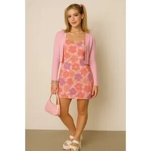 Vintage Old Navy Floral Sundress Babydoll Tea Length Pink 90s Y2K Barbiecore 10