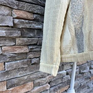 Sweater is creme & gray in color