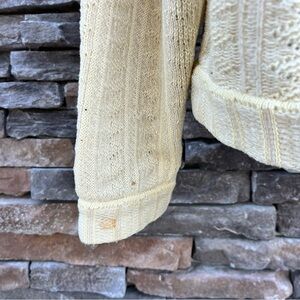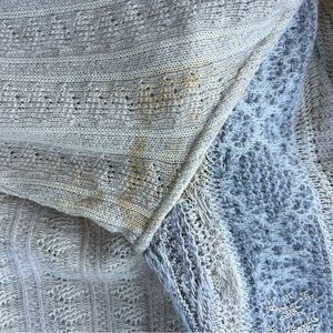 Sweater has discolored areas under the arms, on the front and on the sleeves. Please see all pictures.